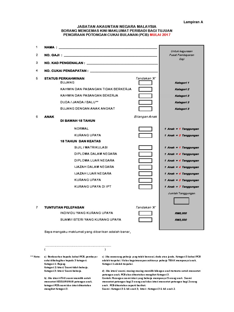 Lampiran A Borang Kemaskini Maklumat Peribadi Pcb 2017 Pdf